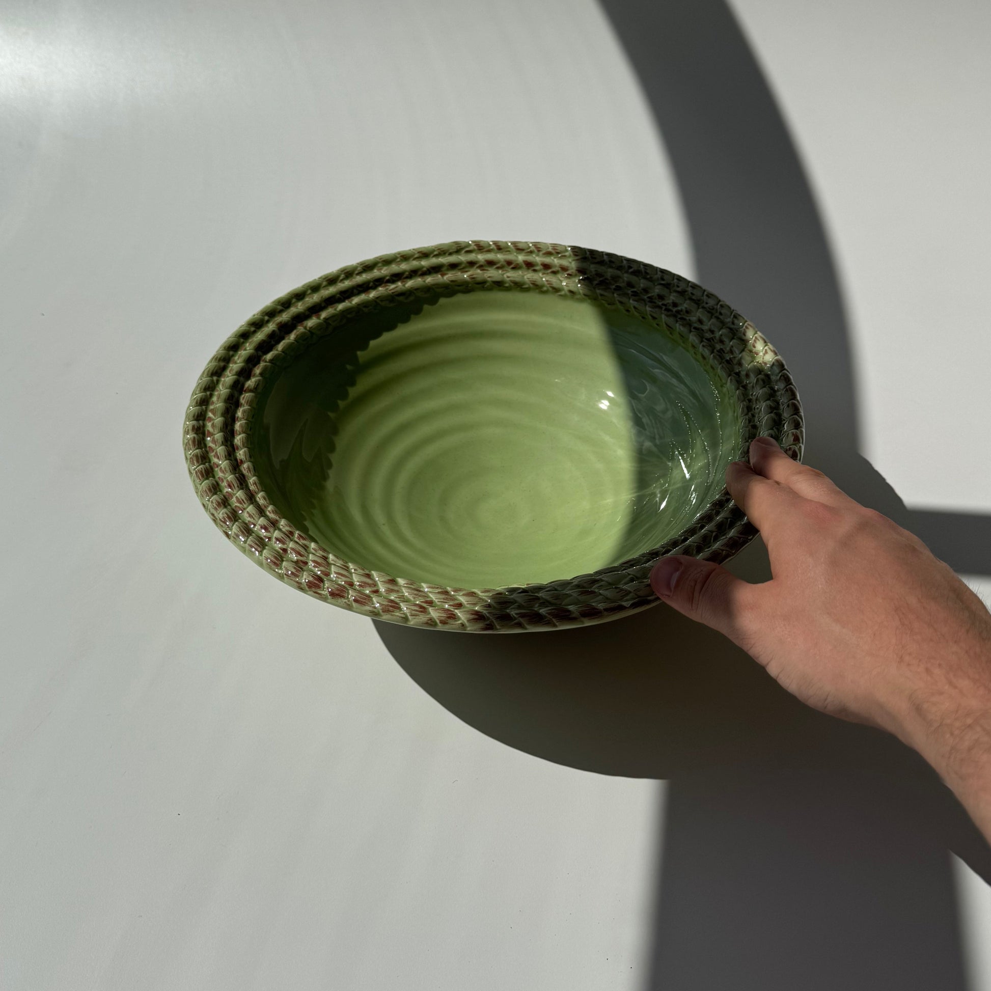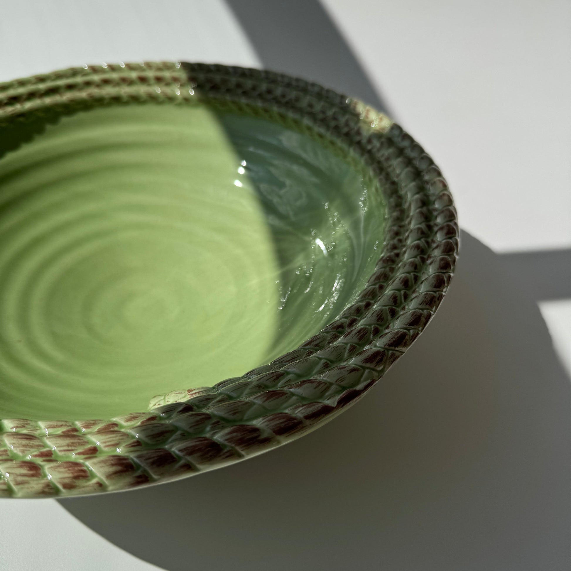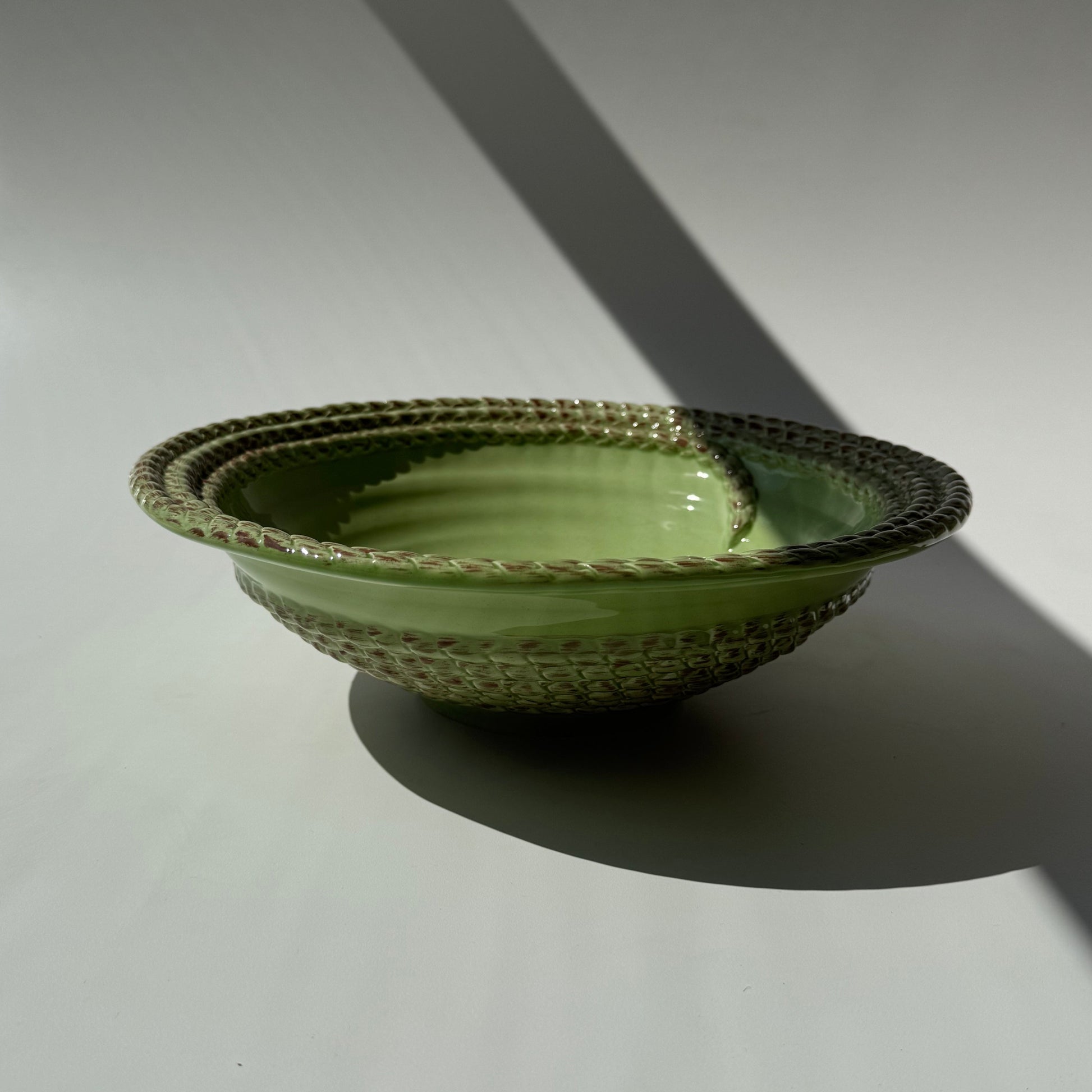 Centro de mesa, fruteira, em cerâmica pintada à mão.