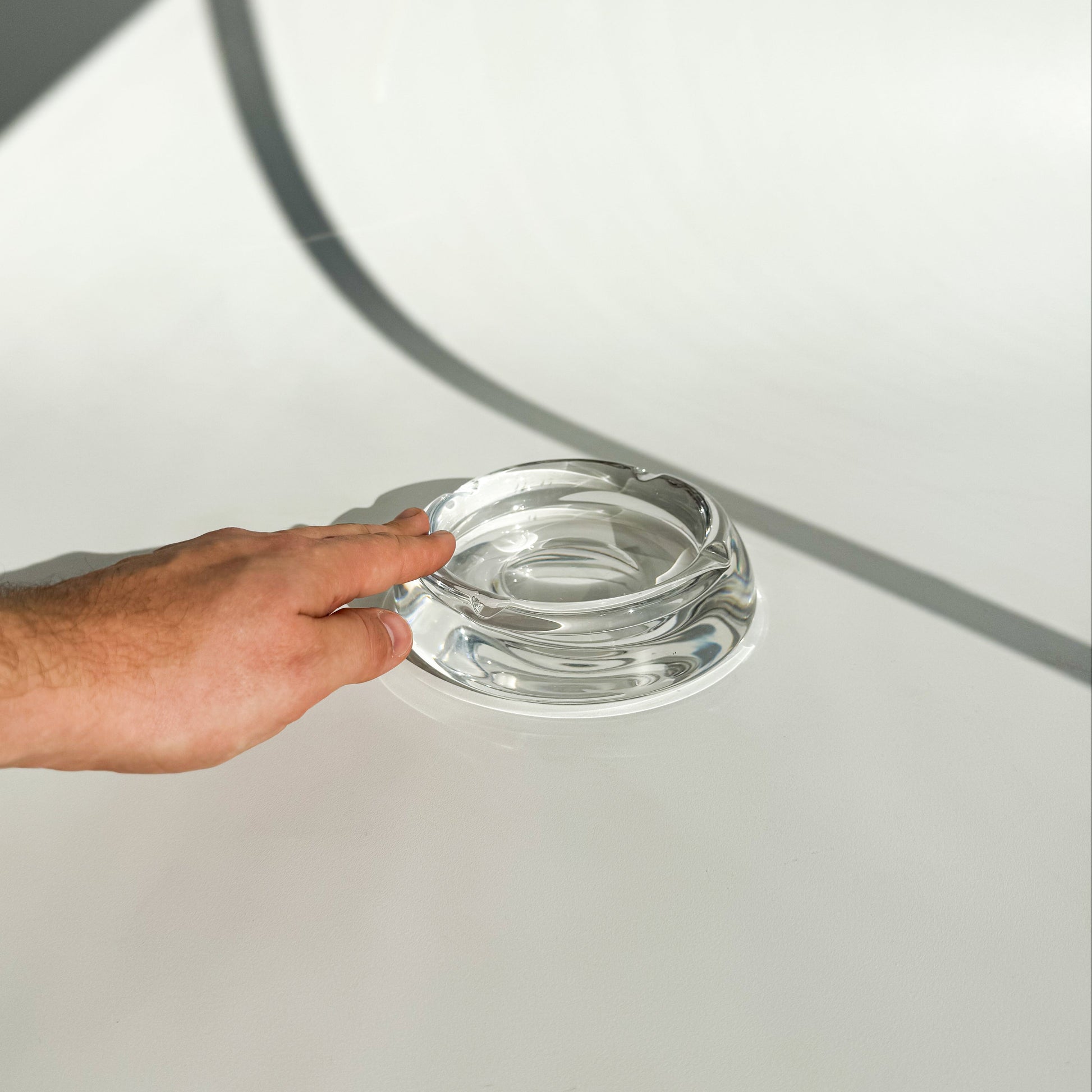 Cinzeiro de cristal, com quatro apoios para cigarro