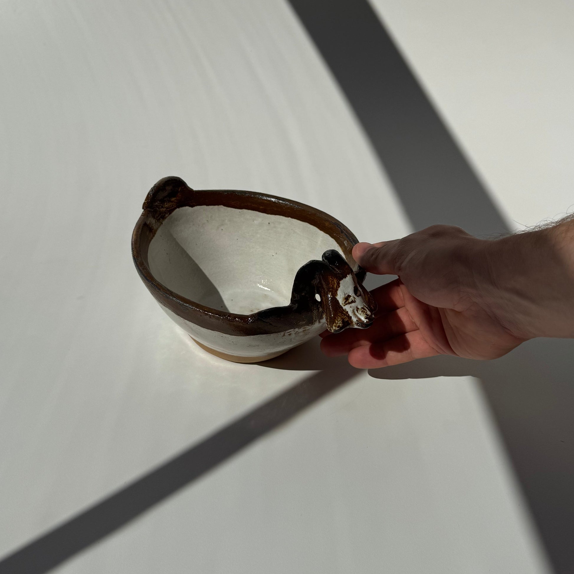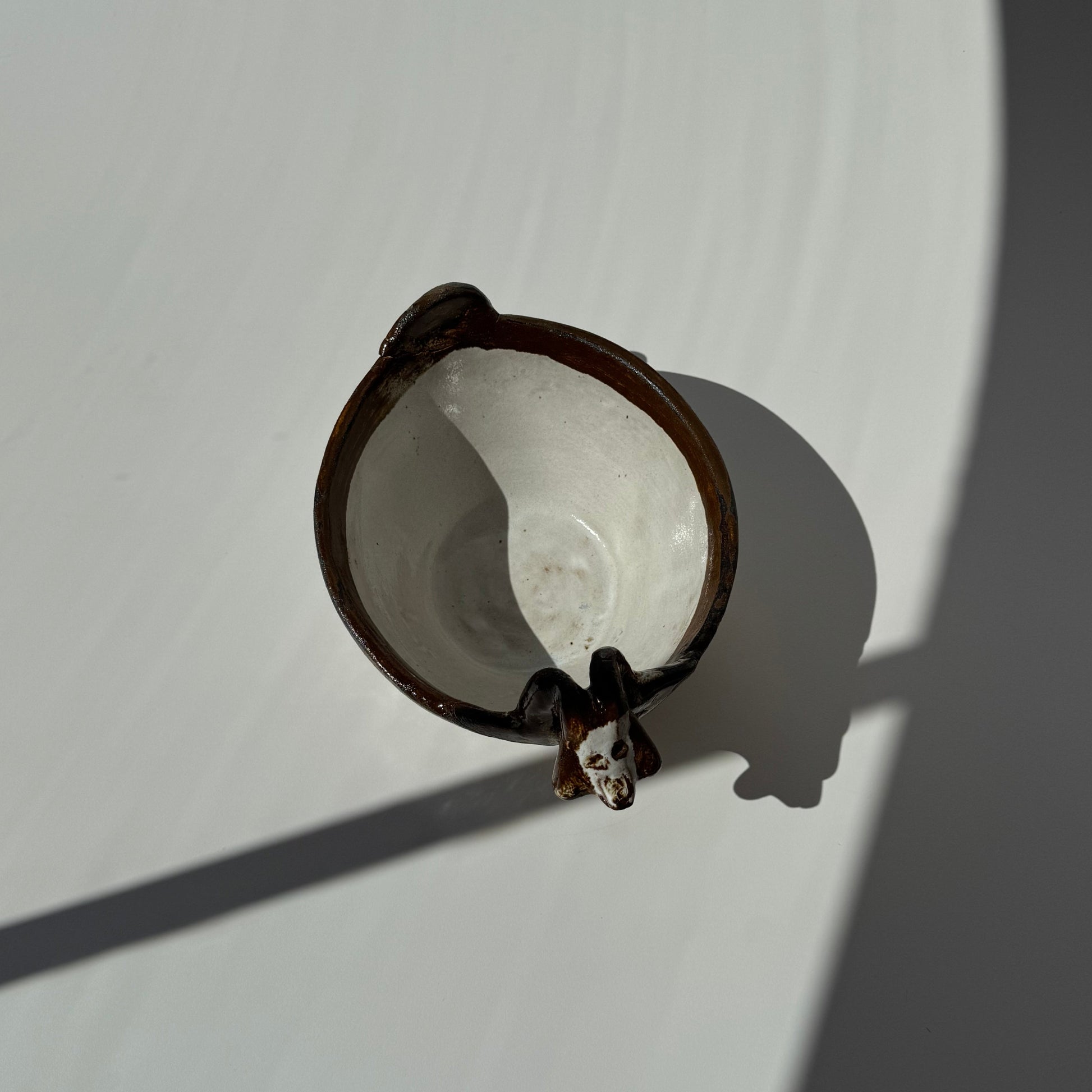 Modelada em torno e esmaltada manualmente, traz na borda a figura de uma cabeça de cabra – símbolo da vida rural e pastoril do norte chileno, com intenção de proteção ao povo.