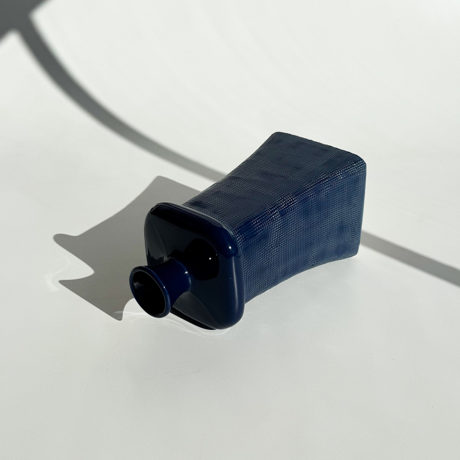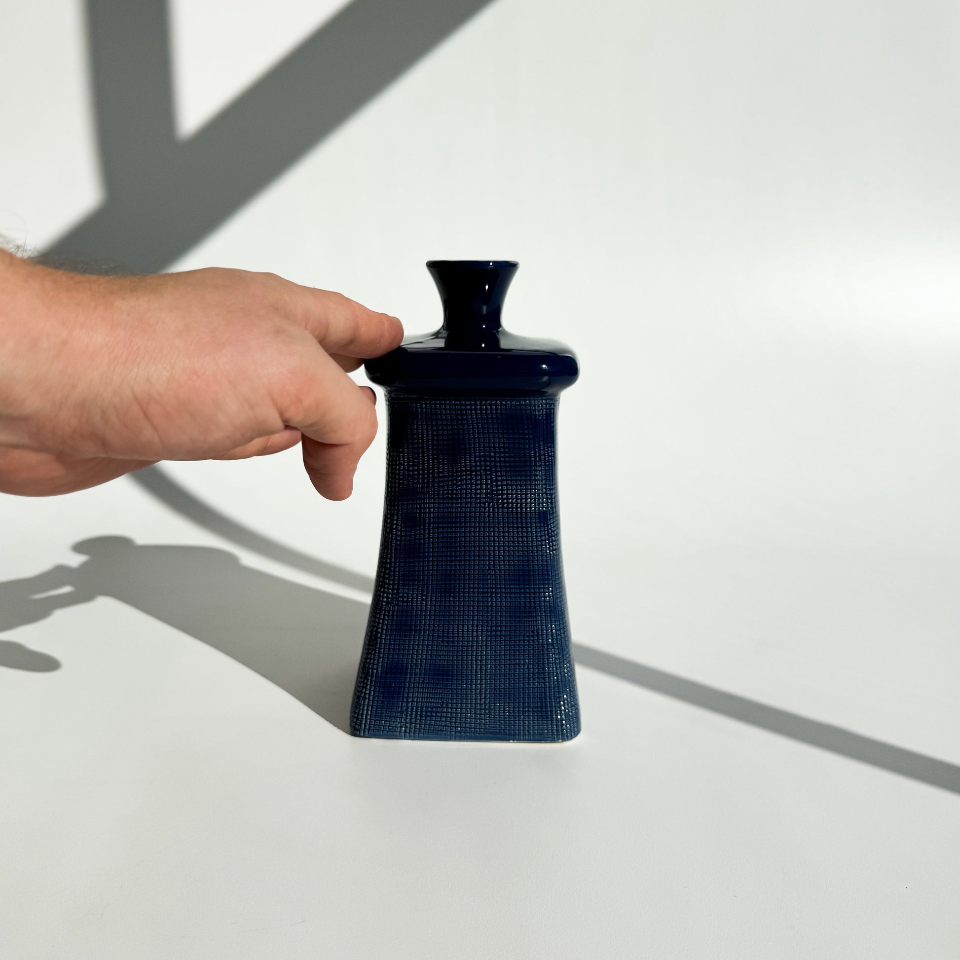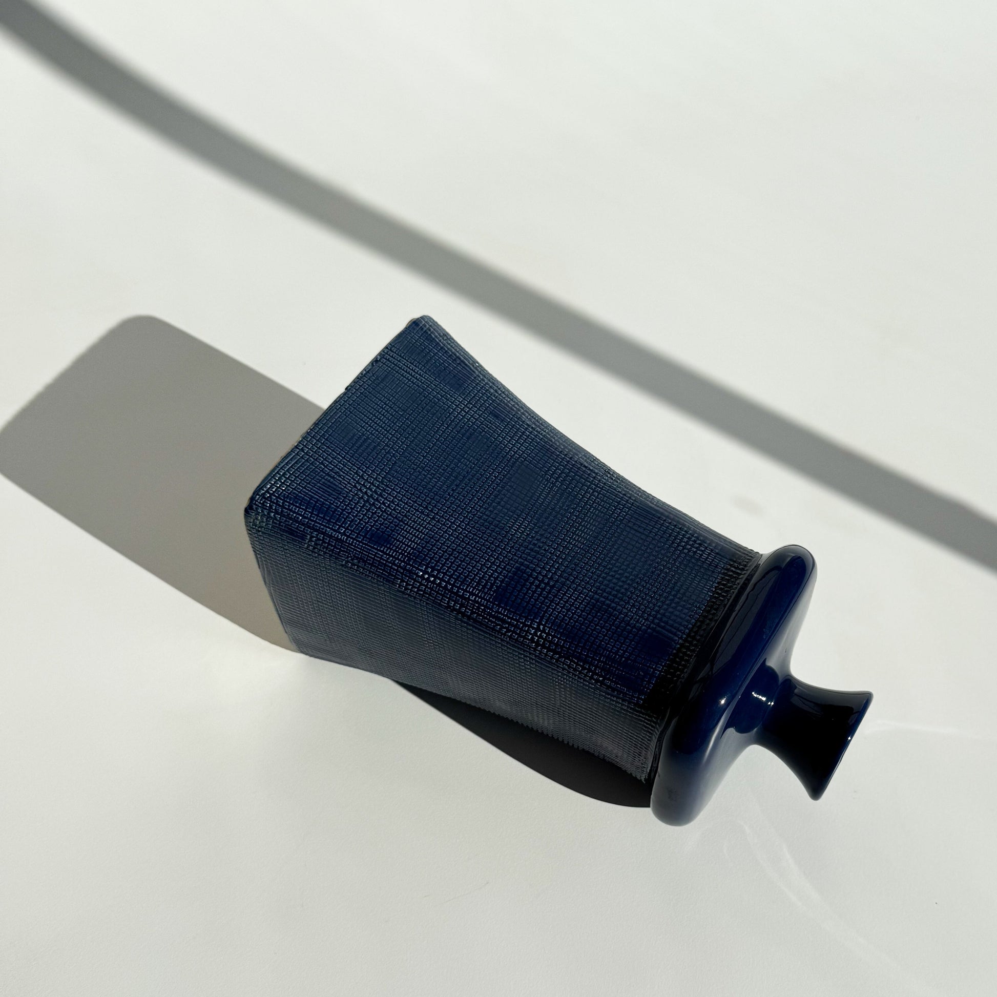 Garrafa oriental azul, com corpo texturizado, pintada a mão