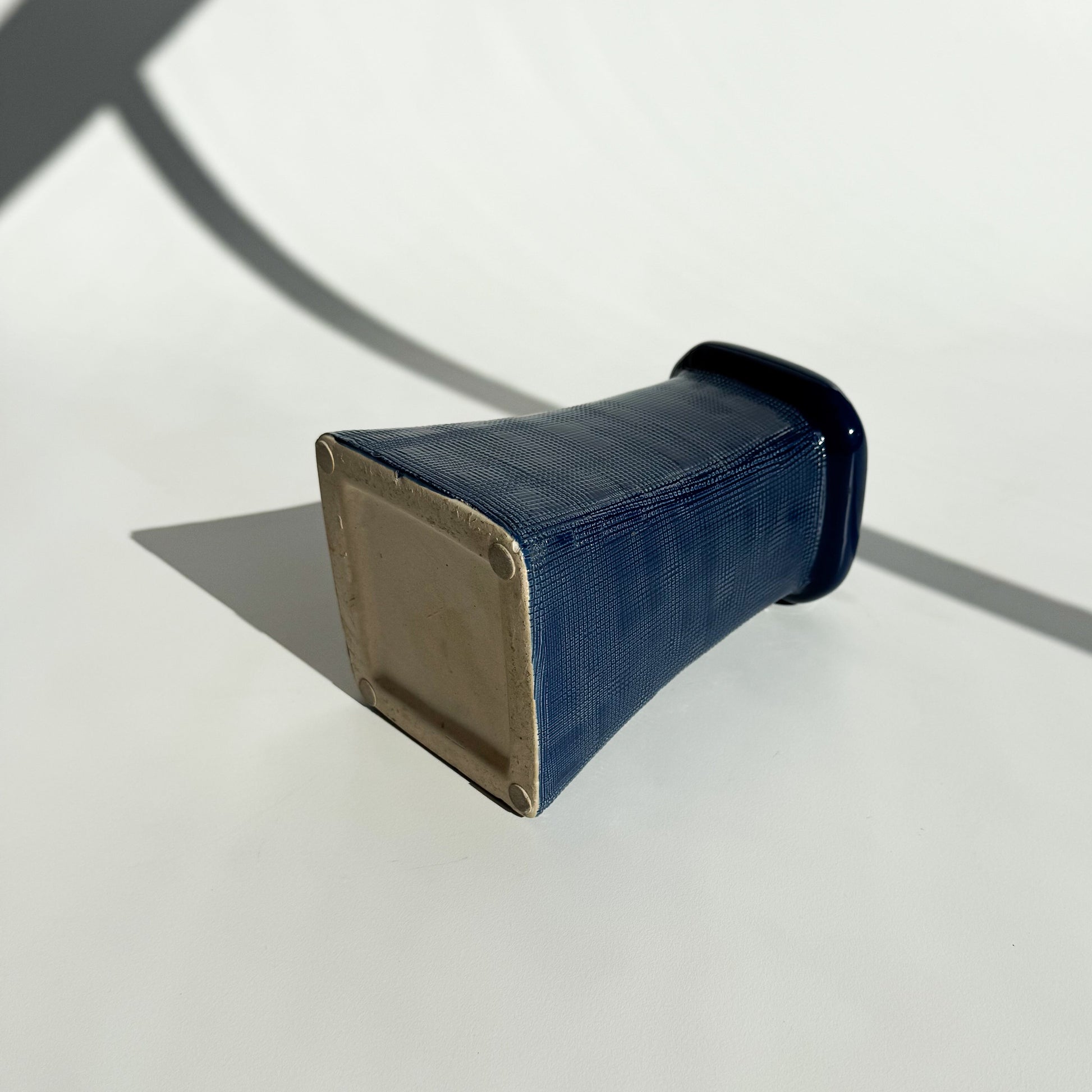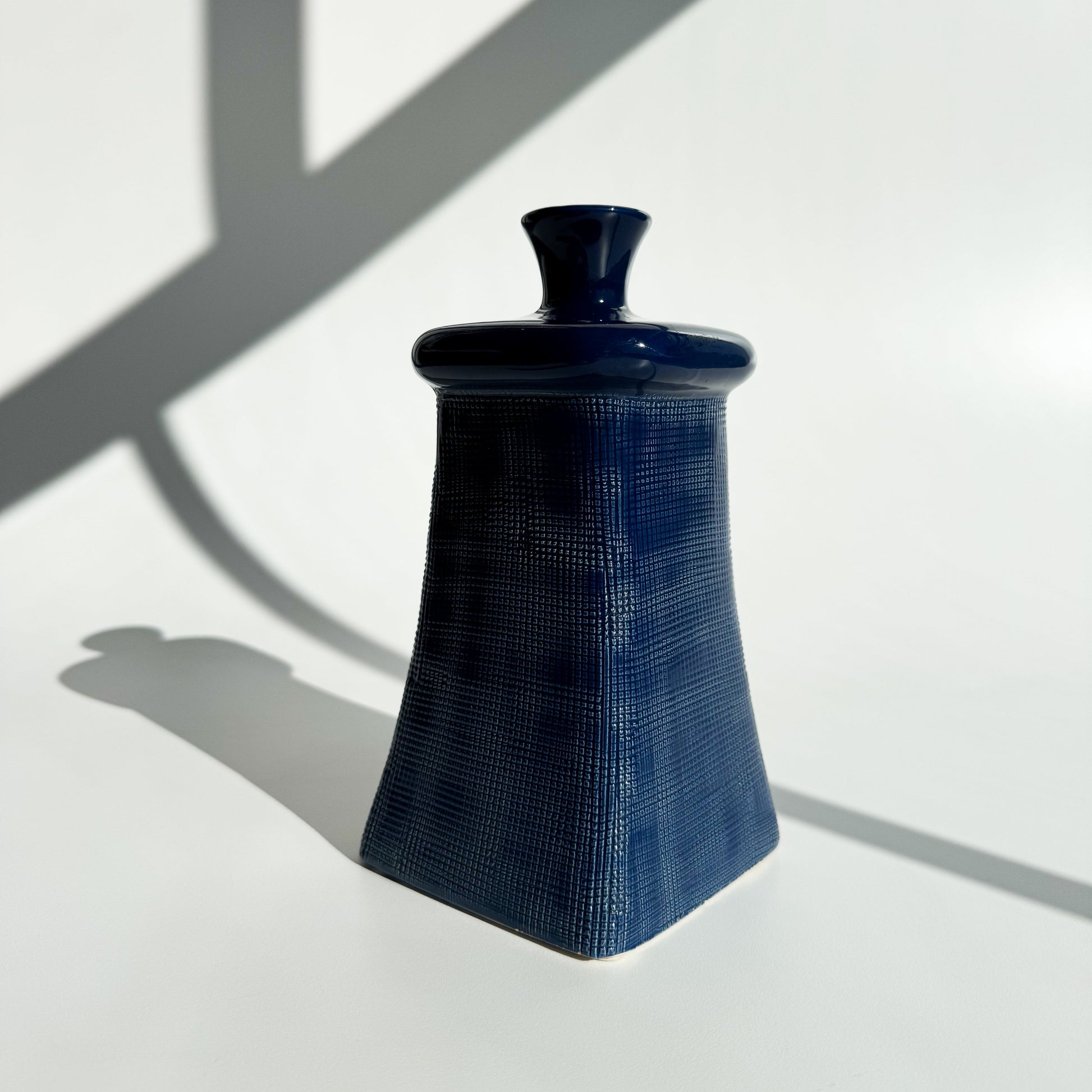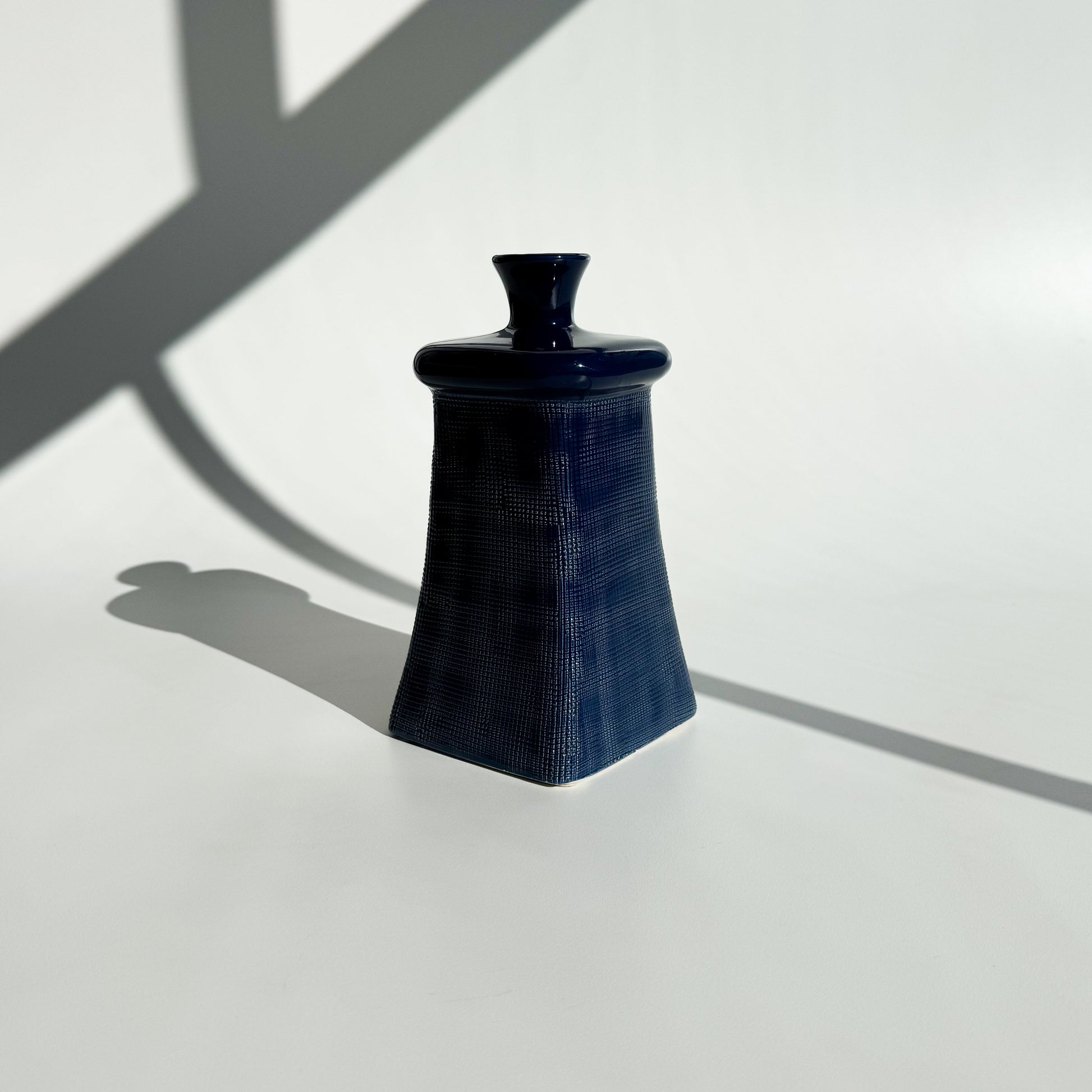 Garrafa oriental azul, com corpo texturizado, pintada a mão