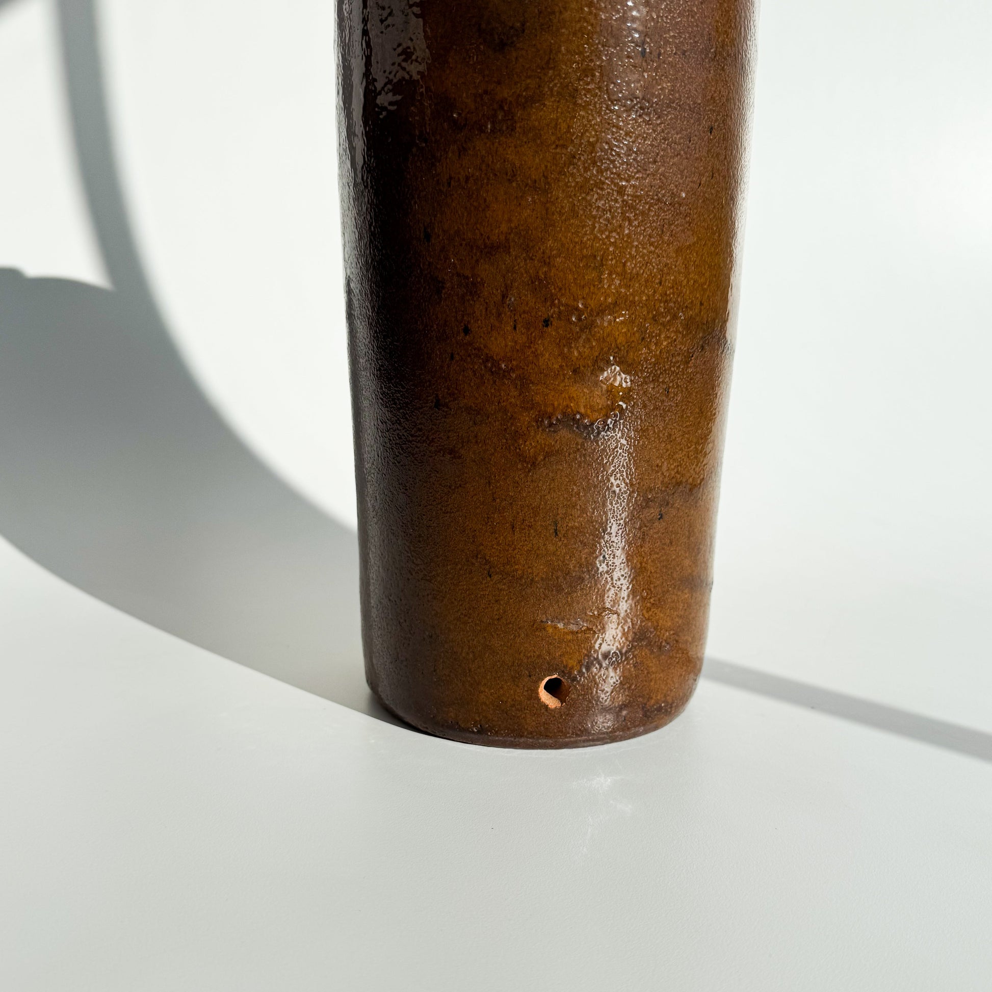 Vaso em cerâmica esmaltada, pintado a mão. Com perfuração na base, para fiação de luminária.