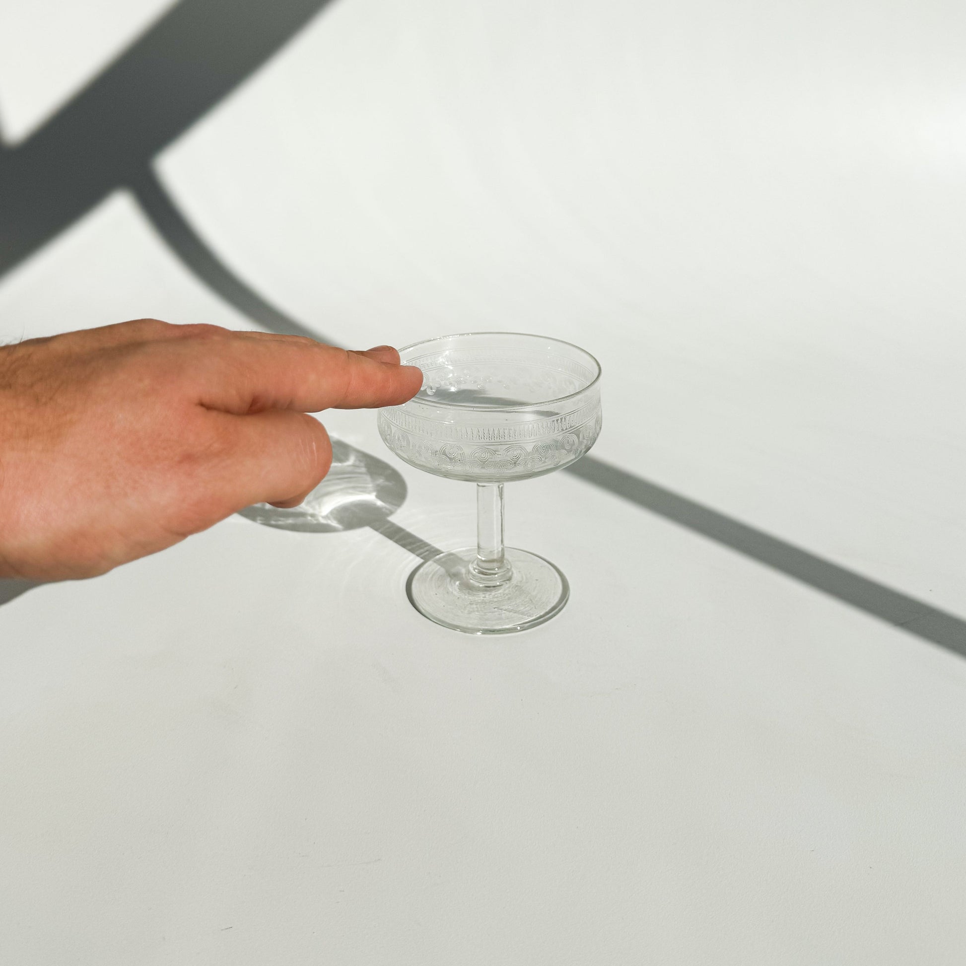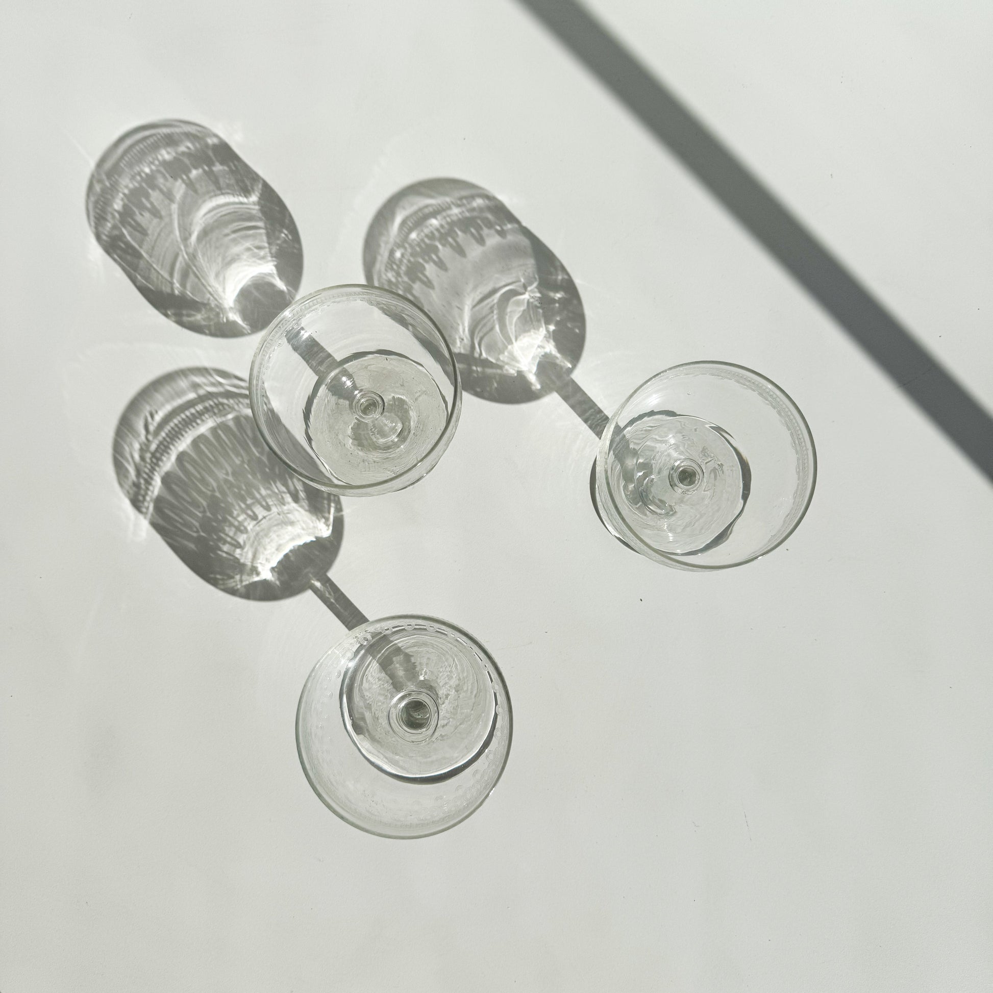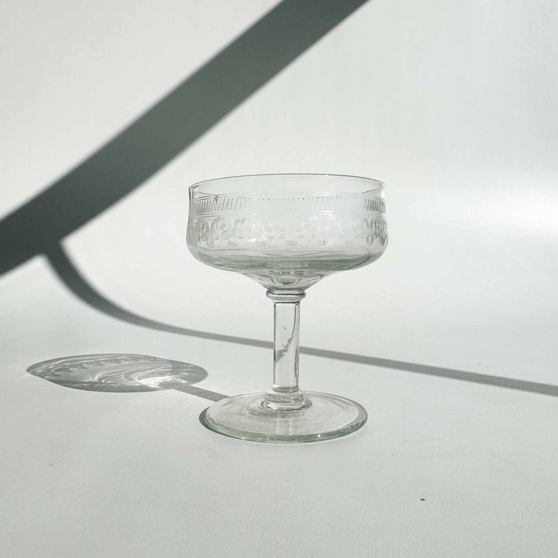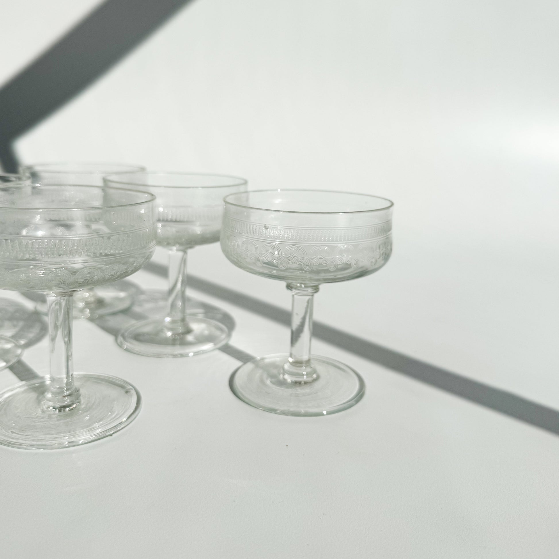Conjunto com seis taças de cristal translúcido, lapidadas com motivos variados.