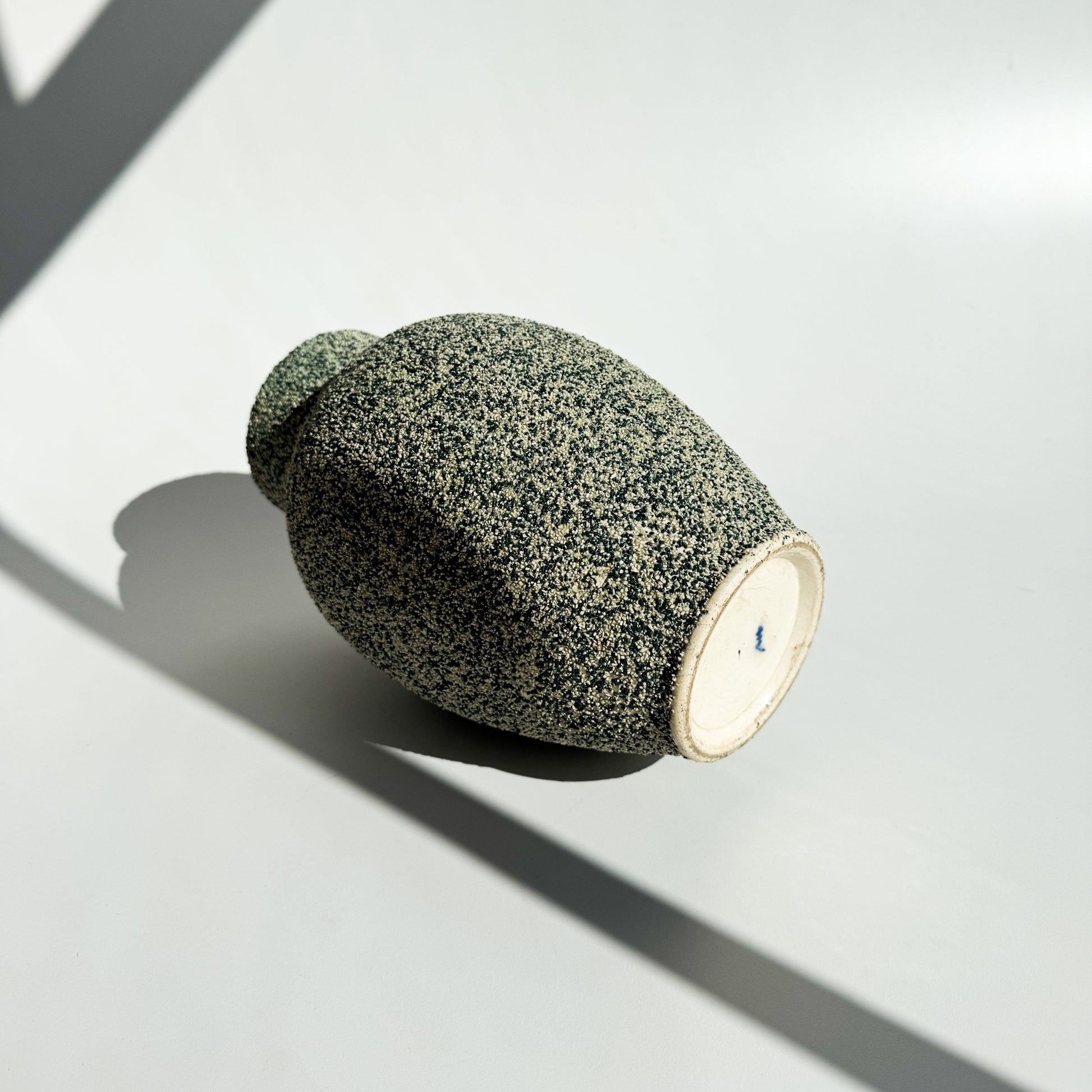 Vaso feito em porcelana e argila com acabamento sand majolica e flores e folhas em barbotine moldadas e pintadas à mão.