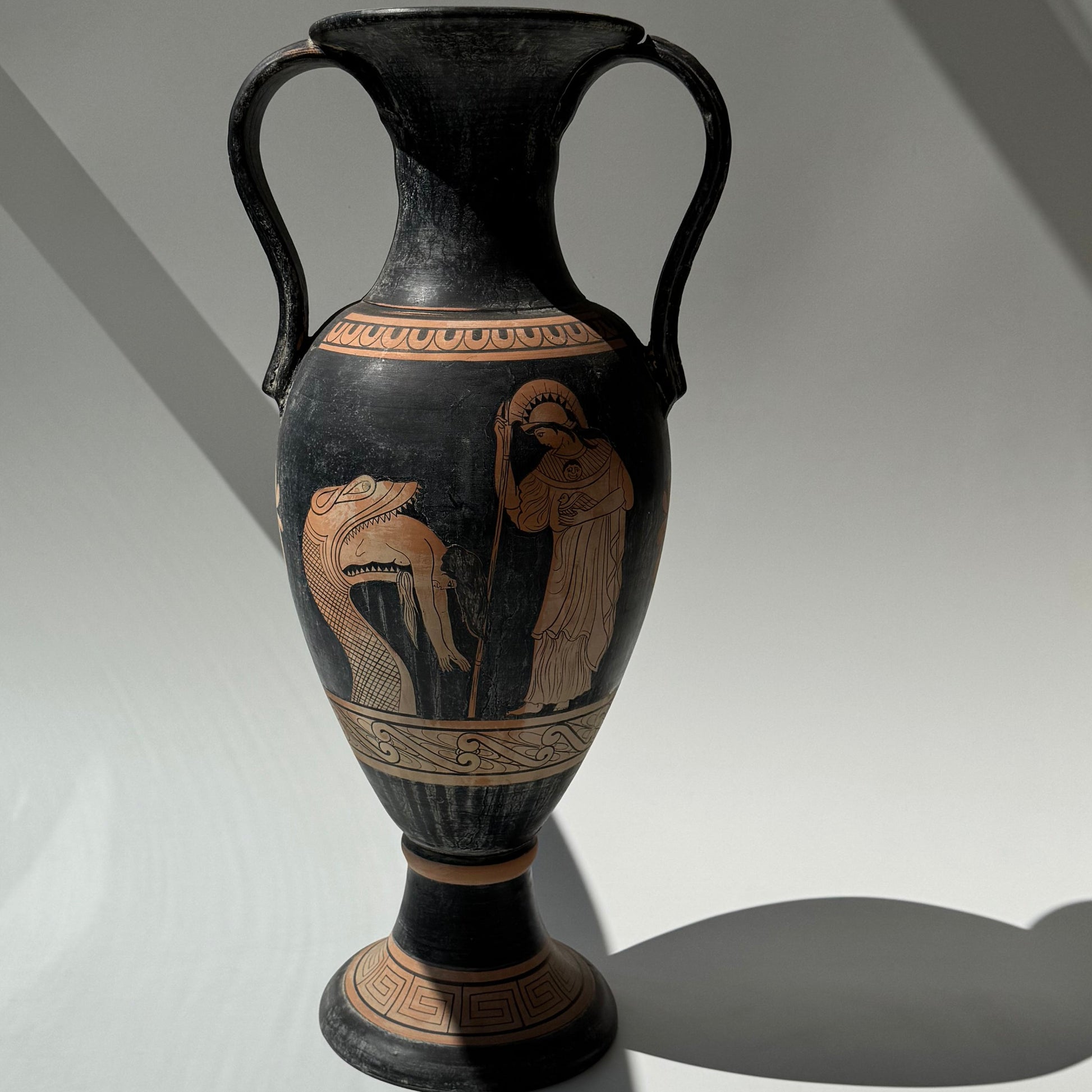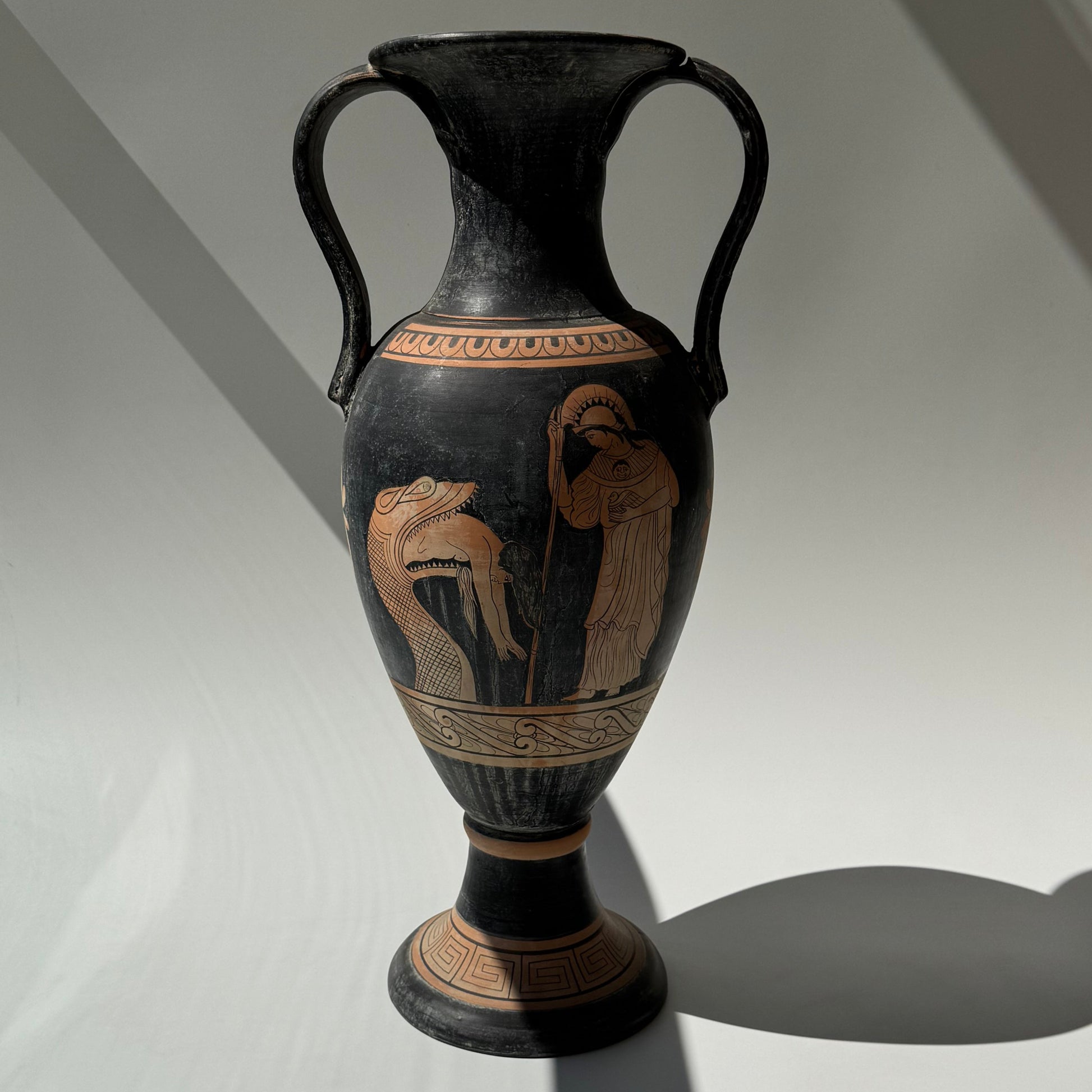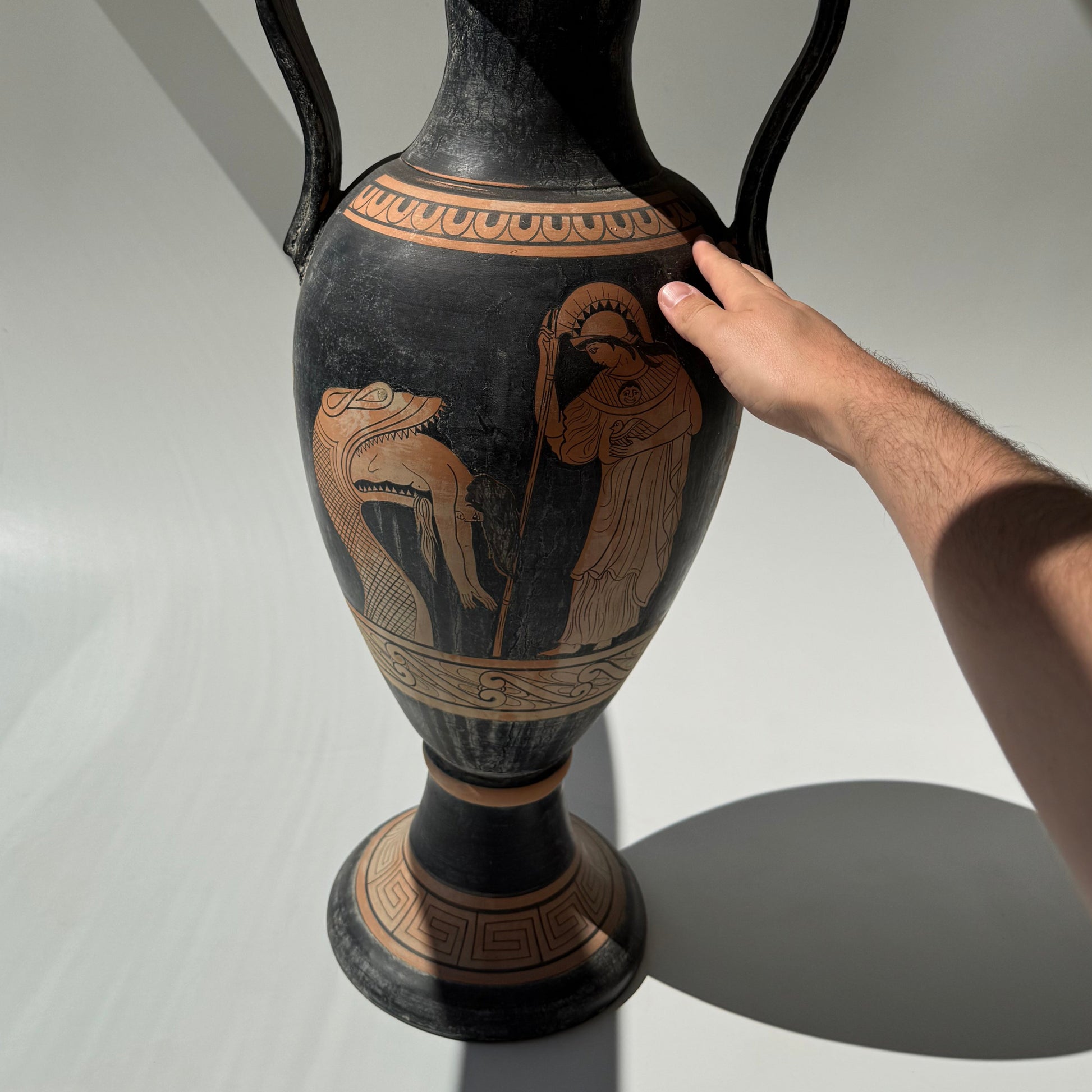 Grande vaso em cerâmica com motivos gregos