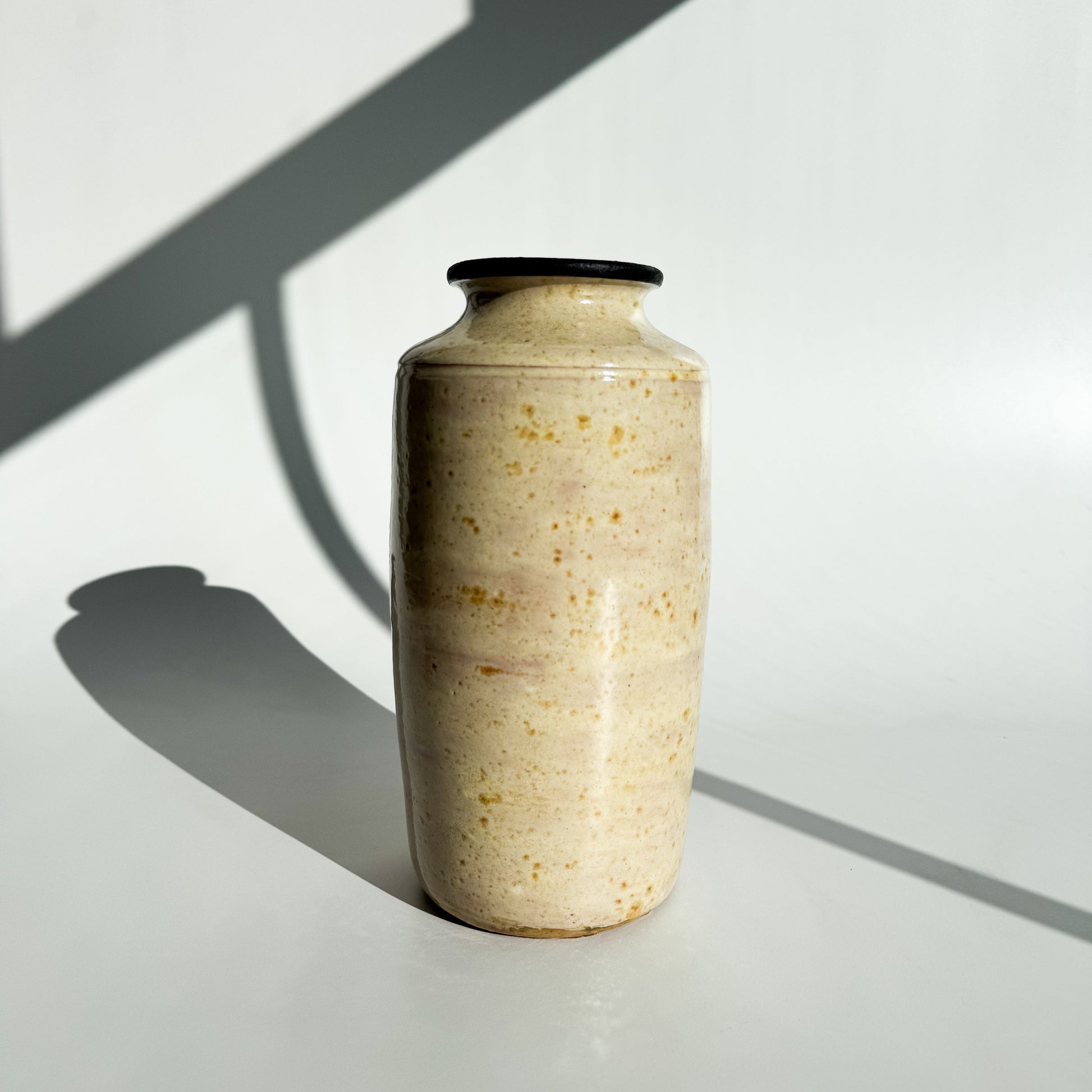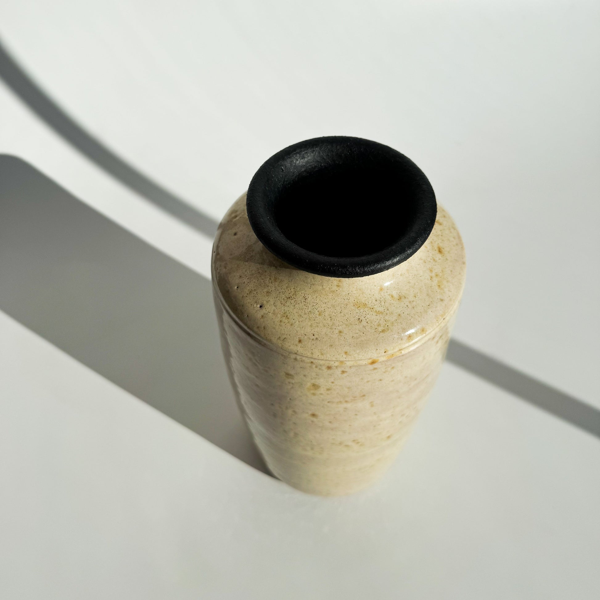 Vaso em cerâmica esmaltada creme, pintado a mão, com base de cortiça e bocal texturizado.